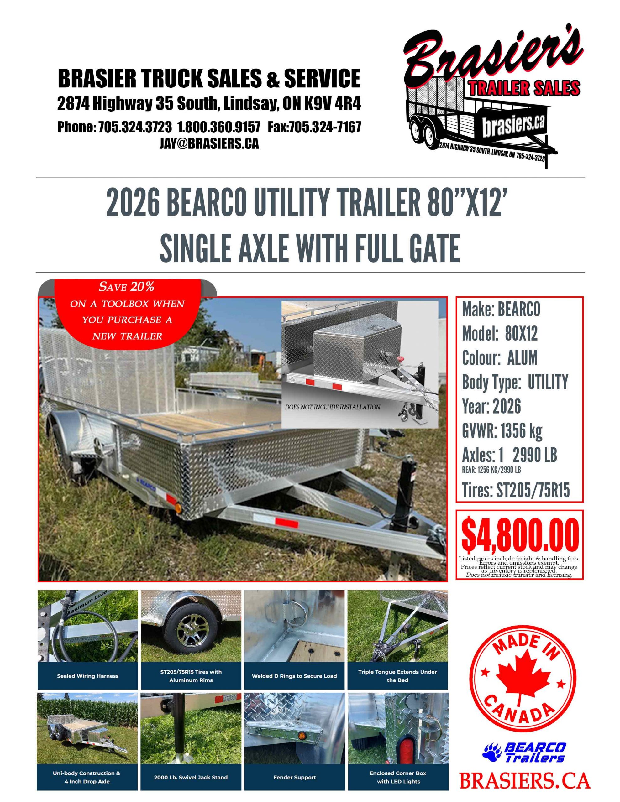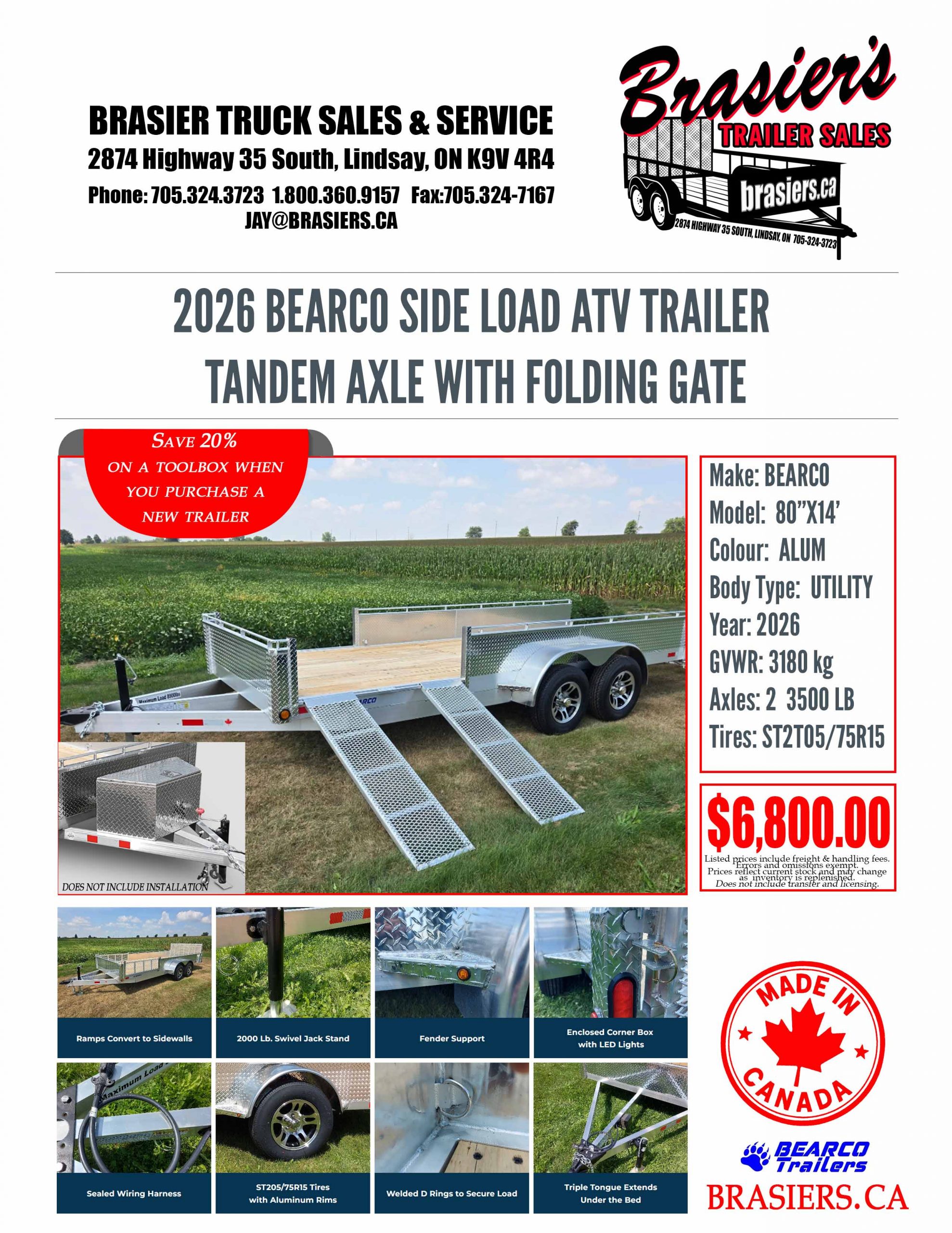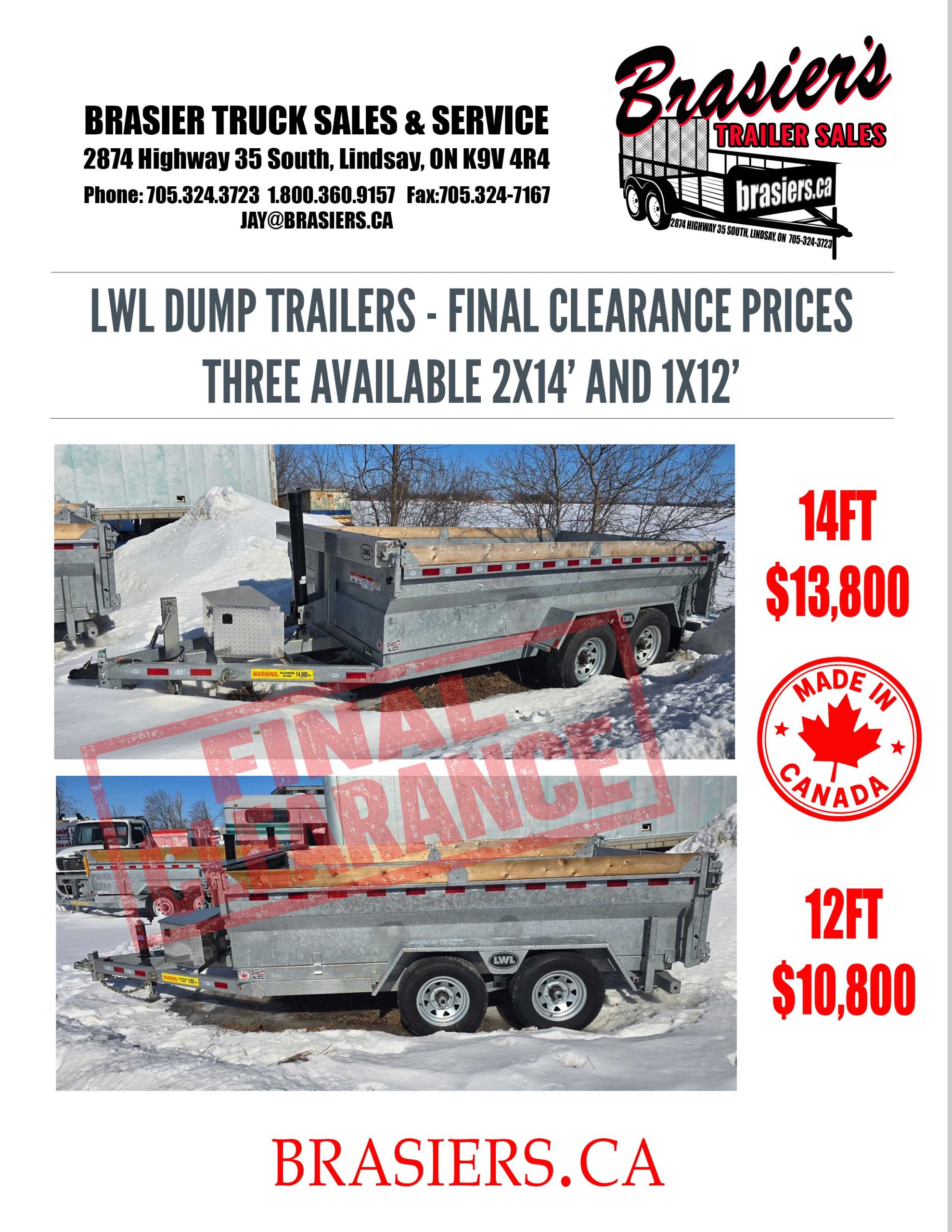At Brasier Truck Sales & Service, we proudly sell Canadian-made trailers built for the demands of Ontario roads and work sites. Serving the Kawartha Lakes region, we offer a wide selection of utility trailers, dump trailers, ATV trailers, enclosed trailers, cargo trailers, and drive-on equipment trailers designed for durability, reliability, and everyday performance. Whether you’re hauling equipment for work, moving recreational vehicles, or tackling projects around the property, our trailers are built to handle the job. With quality construction and local service you can trust, Brasier Truck Sales & Service is your local source for dependable Canadian-built trailers in Kawartha Lakes.